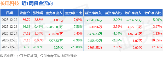 沪深股通持股方面,截止2025年12月26日收盘,长电科技沪股通持股数为1.08亿股,占流通股比为604.0%。