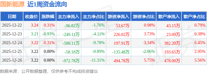 沪深股通持股方面,截止2025年12月26日收盘,国新能源沪股通持股数为1033.85万股,占流通股比为58.0%。
