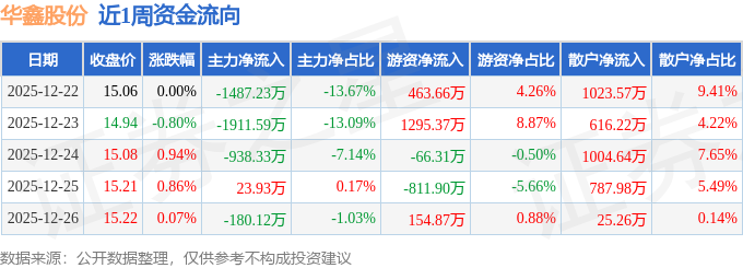 资金流向数据方面,本周华鑫股份主力资金合计净流出4493.35万元,游资资金合计净流入1035.68万元,散户资金合计净流入3457.66万元。本周资金流向一览见下表:
