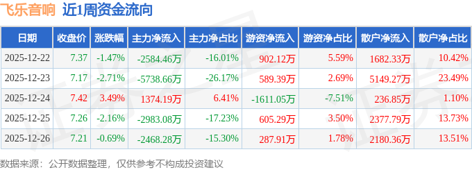 资金流向数据方面,本周飞乐音响主力资金合计净流出1.24亿元,游资资金合计净流入773.68万元,散户资金合计净流入1.16亿元。本周资金流向一览见下表: