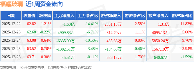 资金流向数据方面,本周福耀玻璃主力资金合计净流出2.86亿元,游资资金合计净流入4663.0万元,散户资金合计净流入2.4亿元。本周资金流向一览见下表: