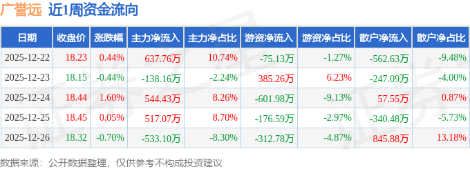 资金流向数据方面,本周广誉远主力资金合计净流入1028.0万元,游资资金合计净流出781.22万元,散户资金合计净流出246.78万元。本周资金流向一览见下表:
