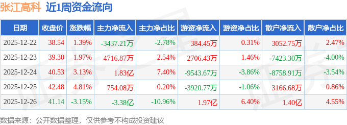 沪深股通持股方面,截止2025年12月26日收盘,张江高科沪股通持股数为2976.32万股,占流通股比为192.0%。