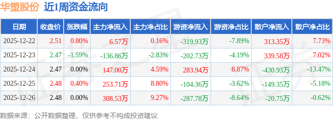 沪深股通持股方面,截止2025年12月26日收盘,华塑股份沪股通持股数为123.3万股,占流通股比为7.0%。