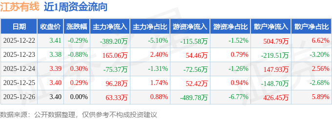 资金流向数据方面,本周江苏有线主力资金合计净流出139.91万元,游资资金合计净流出571.05万元,散户资金合计净流入710.96万元。本周资金流向一览见下表:
