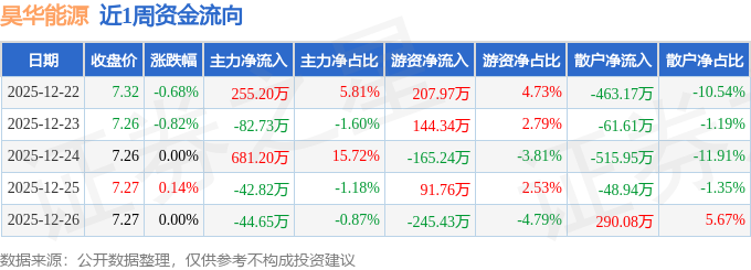 沪深股通持股方面,截止2025年12月26日收盘,昊华能源沪股通持股数为5741.53万股,占流通股比为399.0%。
