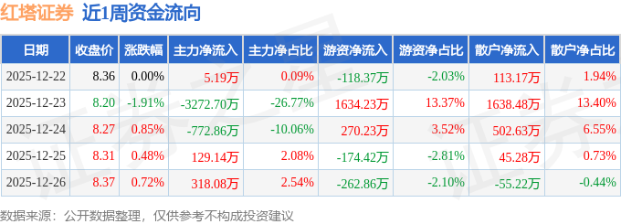 沪深股通持股方面,截止2025年12月26日收盘,红塔证券沪股通持股数为1570.27万股,占流通股比为33.0%。
