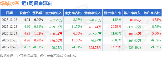 资金流向数据方面,本周绿城水务主力资金合计净流出75.94万元,游资资金合计净流入392.96万元,散户资金合计净流出317.03万元。本周资金流向一览见下表: