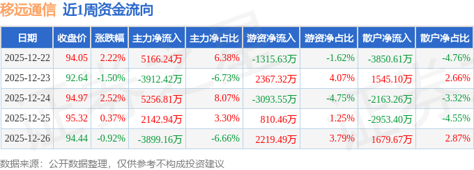 资金流向数据方面,本周移远通信主力资金合计净流入4754.41万元,游资资金合计净流入988.1万元,散户资金合计净流出5742.51万元。本周资金流向一览见下表: