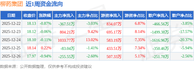 沪深股通持股方面,截止2025年12月26日收盘,柳药集团沪股通持股数为418.06万股,占流通股比为116.0%。