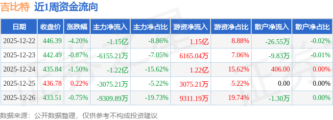 资金流向数据方面,本周吉比特主力资金合计净流出4.22亿元,游资资金合计净流入4.22亿元,散户资金合计净流出37.64万元。本周资金流向一览见下表: