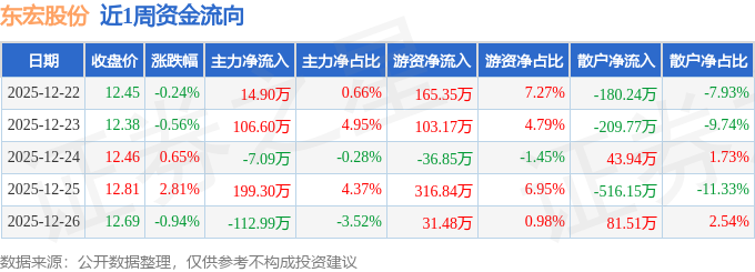 资金流向数据方面,本周东宏股份主力资金合计净流入200.73万元,游资资金合计净流入579.99万元,散户资金合计净流出780.71万元。本周资金流向一览见下表: