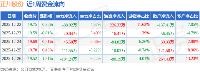 资金流向数据方面,本周正川股份主力资金合计净流出299.17万元,游资资金合计净流入67.7万元,散户资金合计净流入231.47万元。本周资金流向一览见下表: