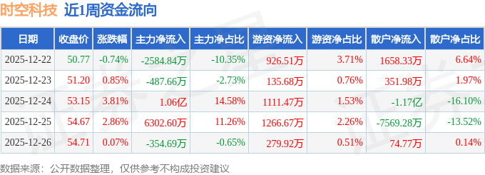 资金流向数据方面,本周时空科技主力资金合计净流入1.35亿元,游资资金合计净流入3720.25万元,散户资金合计净流出1.72亿元。本周资金流向一览见下表: