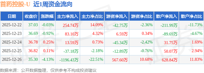 资金流向数据方面,本周首药控股主力资金合计净流出882.19万元,游资资金合计净流入473.21万元,散户资金合计净流入408.97万元。本周资金流向一览见下表: