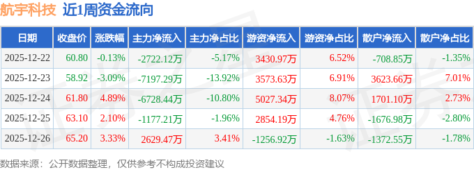 沪深股通持股方面,截止2025年12月26日收盘,航宇科技沪股通持股数为63.79万股,占流通股比为45.0%。