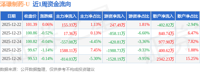 资金流向数据方面,本周泽璟制药主力资金合计净流入389.69万元,游资资金合计净流出4548.35万元,散户资金合计净流入4158.66万元。本周资金流向一览见下表: