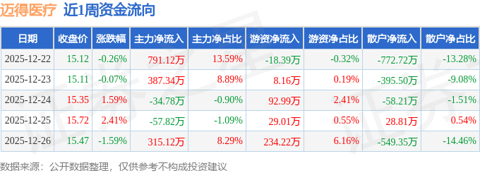 资金流向数据方面,本周迈得医疗主力资金合计净流入1400.99万元,游资资金合计净流入345.98万元,散户资金合计净流出1746.97万元。本周资金流向一览见下表: