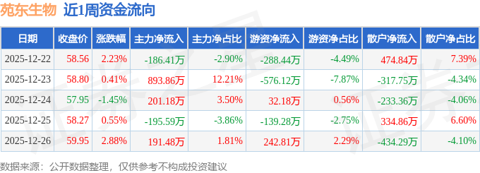 资金流向数据方面,本周苑东生物主力资金合计净流入904.53万元,游资资金合计净流出728.84万元,散户资金合计净流出175.69万元。本周资金流向一览见下表: