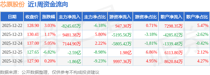 证券之星消息,截至2025年12月26日收盘,芯原股份(688521)报收于127.9元,较上周的125.11元上涨2.23%。本周,芯原股份12月24日盘中最高价报139.39元。12月26日盘中最低价报124.0元。芯原股份当前最新总市值672.57亿元,在半导体板块市值排名22/169,在两市A股市值排名261/5178。