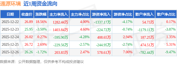 资金流向数据方面,本周通源环境主力资金合计净流入2064.64万元,游资资金合计净流出819.59万元,散户资金合计净流出1245.05万元。本周资金流向一览见下表: