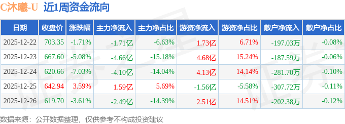资金流向数据方面,本周沐曦股份主力资金合计净流出11.37亿元,游资资金合计净流入11.49亿元,散户资金合计净流出1176.42万元。本周资金流向一览见下表: