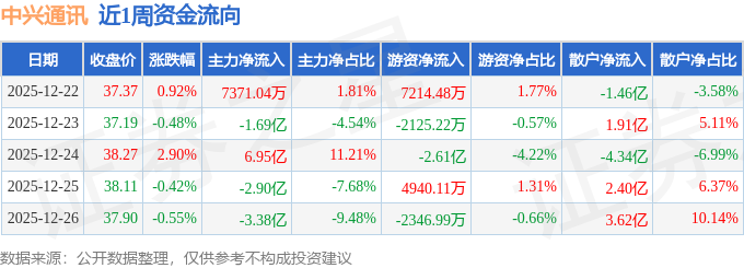 沪深股通持股方面,截止2025年12月26日收盘,中兴通讯深股通持股数为7941.38万股,占流通股比为197.0%。