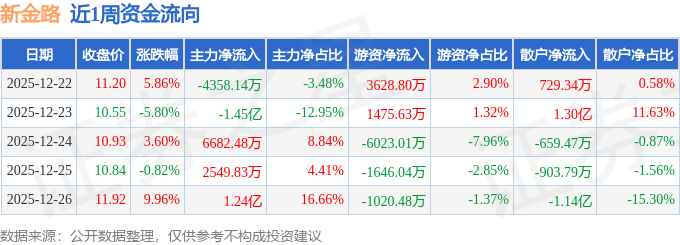 资金流向数据方面,本周新金路主力资金合计净流入2801.11万元,游资资金合计净流出3585.1万元,散户资金合计净流入783.99万元。本周资金流向一览见下表: