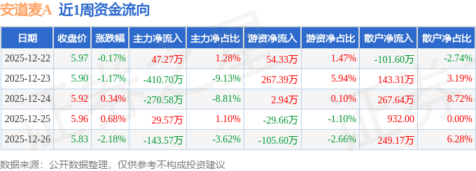 资金流向数据方面,本周安道麦A主力资金合计净流出748.02万元,游资资金合计净流入189.4万元,散户资金合计净流入558.62万元。本周资金流向一览见下表: