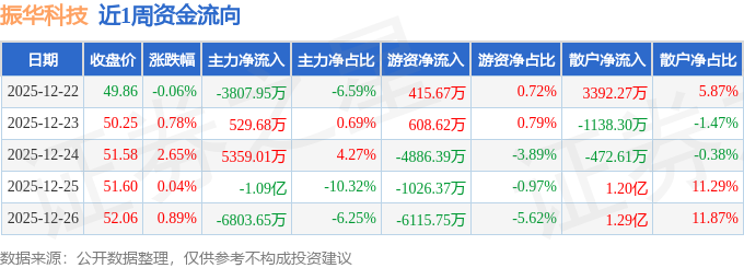沪深股通持股方面,截止2025年12月26日收盘,振华科技深股通持股数为864.2万股,占流通股比为156.0%。