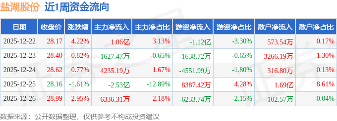 沪深股通持股方面,截止2025年12月26日收盘,盐湖股份深股通持股数为1.14亿股,占流通股比为210.0%。