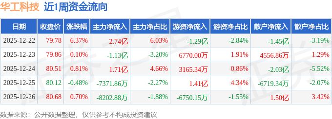 资金流向数据方面,本周华工科技主力资金合计净流入1.76亿元,游资资金合计净流入4389.22万元,散户资金合计净流出2.2亿元。本周资金流向一览见下表: