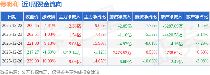 资金流向数据方面,本周德明利主力资金合计净流入21.54亿元,游资资金合计净流出14.41亿元,散户资金合计净流出7.12亿元。本周资金流向一览见下表: