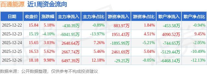 沪深股通持股方面,截止2025年12月26日收盘,百通能源深股通持股数为108.69万股,占流通股比为236.0%。