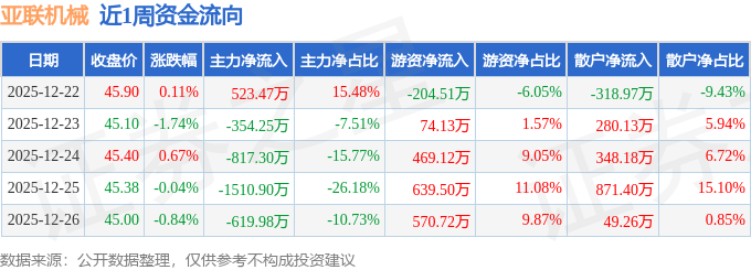 资金流向数据方面,本周亚联机械主力资金合计净流出2778.95万元,游资资金合计净流入1548.96万元,散户资金合计净流入1230.0万元。本周资金流向一览见下表: