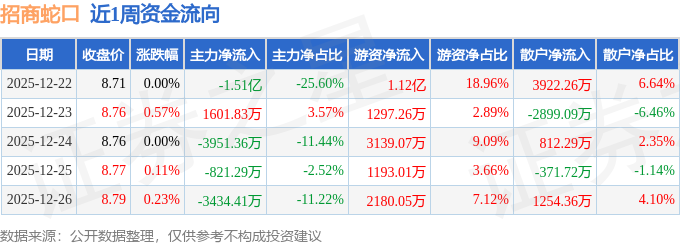 资金流向数据方面,本周招商蛇口主力资金合计净流出2.17亿元,游资资金合计净流入1.9亿元,散户资金合计净流入2718.11万元。本周资金流向一览见下表: