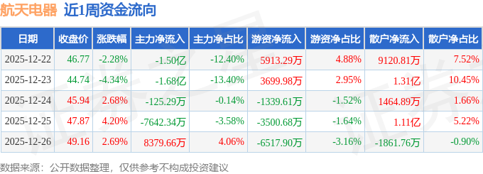 沪深股通持股方面,截止2025年12月26日收盘,航天电器深股通持股数为214.92万股,占流通股比为47.0%。