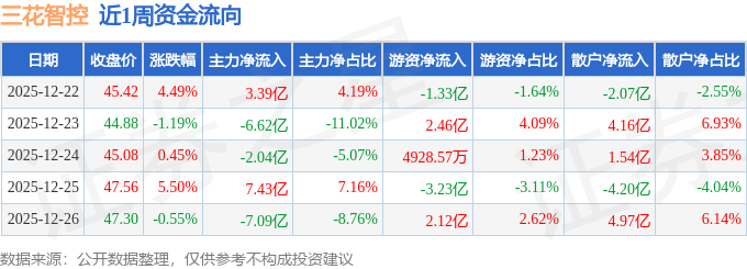 资金流向数据方面,本周三花智控主力资金合计净流出4.92亿元,游资资金合计净流入5086.44万元,散户资金合计净流入4.41亿元。本周资金流向一览见下表: