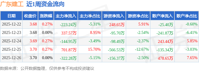 沪深股通持股方面,截止2025年12月26日收盘,广东建工深股通持股数为1665.73万股,占流通股比为107.0%。