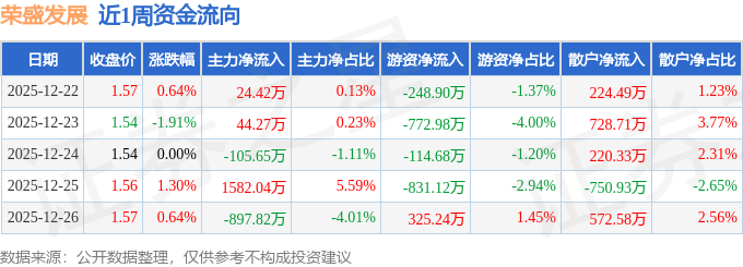 资金流向数据方面,本周荣盛发展主力资金合计净流入647.26万元,游资资金合计净流出1642.44万元,散户资金合计净流入995.18万元。本周资金流向一览见下表: