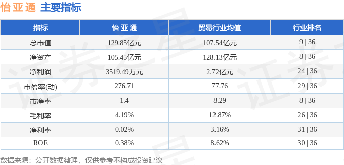 证券之星消息,截至2025年12月26日收盘,怡 亚 通(002183)报收于5.0元,较上周的4.72元上涨5.93%。本周,怡 亚 通12月26日盘中最高价报5.02元。12月24日盘中最低价报4.65元。怡 亚 通当前最新总市值129.85亿元,在贸易板块市值排名4/13,在两市A股市值排名1502/5178。