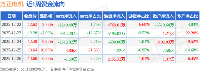 资金流向数据方面,本周方正电机主力资金合计净流入1.15亿元,游资资金合计净流出1.11亿元,散户资金合计净流出397.22万元。本周资金流向一览见下表:
