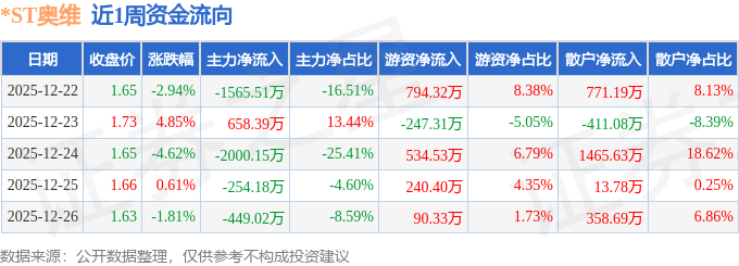 资金流向数据方面,本周*ST奥维主力资金合计净流出3610.46万元,游资资金合计净流入1412.26万元,散户资金合计净流入2198.2万元。本周资金流向一览见下表: