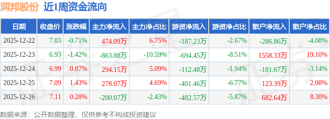 资金流向数据方面,本周润邦股份主力资金合计净流出17.65万元,游资资金合计净流出1878.2万元,散户资金合计净流入1895.84万元。本周资金流向一览见下表: