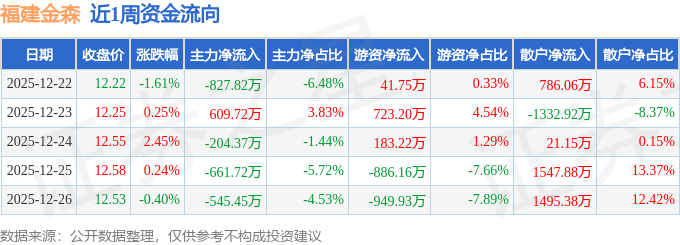 资金流向数据方面,本周福建金森主力资金合计净流出1629.63万元,游资资金合计净流出887.92万元,散户资金合计净流入2517.55万元。本周资金流向一览见下表: