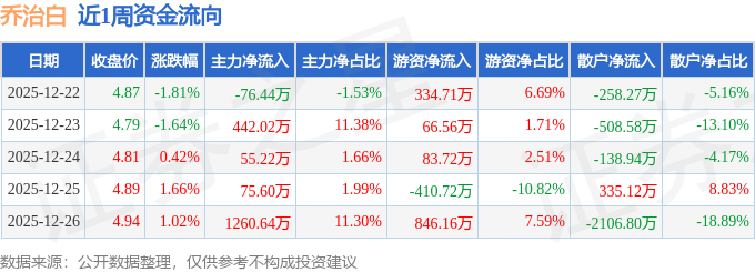 资金流向数据方面,本周乔治白主力资金合计净流入1757.04万元,游资资金合计净流入920.43万元,散户资金合计净流出2677.47万元。本周资金流向一览见下表: