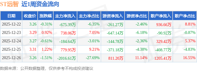 资金流向数据方面,本周ST远智主力资金合计净流出1358.64万元,游资资金合计净流出613.16万元,散户资金合计净流入1971.8万元。本周资金流向一览见下表: