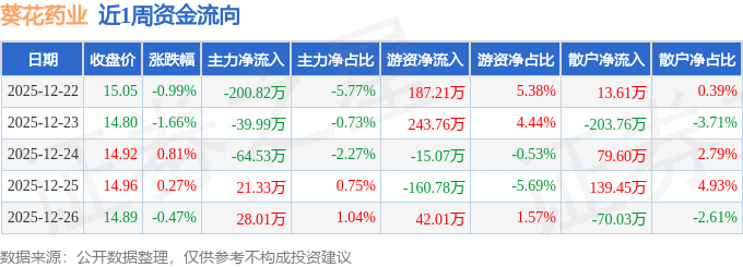 沪深股通持股方面,截止2025年12月26日收盘,葵花药业深股通持股数为481.65万股,占流通股比为82.0%。
