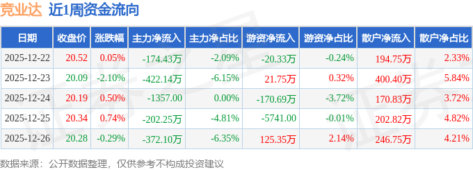 资金流向数据方面,本周竞业达主力资金合计净流出1171.05万元,游资资金合计净流出44.5万元,散户资金合计净流入1215.56万元。本周资金流向一览见下表: