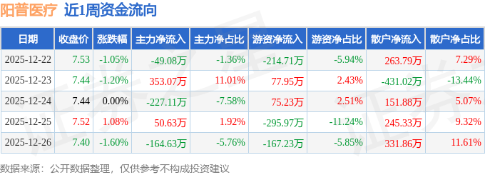 资金流向数据方面,本周阳普医疗主力资金合计净流出37.12万元,游资资金合计净流出524.72万元,散户资金合计净流入561.84万元。本周资金流向一览见下表: